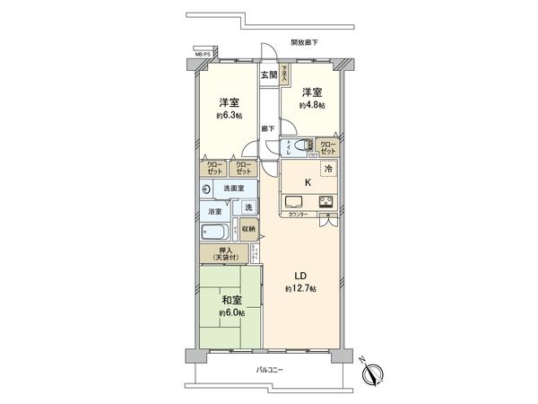3LDK / 72㎡ / 1987年09月築 / 6階