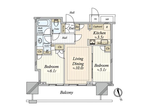 2LDK / 68.38㎡ / 2006年12月築 / 5階