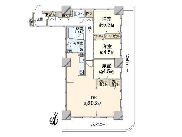 3LDK / 72.87㎡ / 1999年12月築 / 5階
