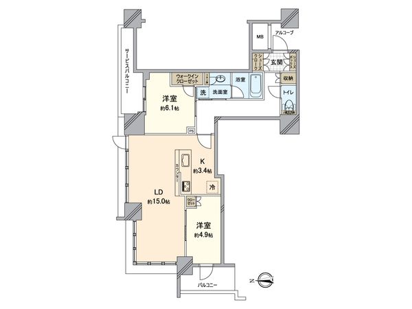 2SLDK / 61.67㎡ / 2003年05月築 / 2階