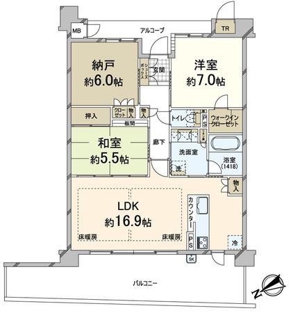 3LDK / 76.4㎡ / 1999年11月築 / 11階