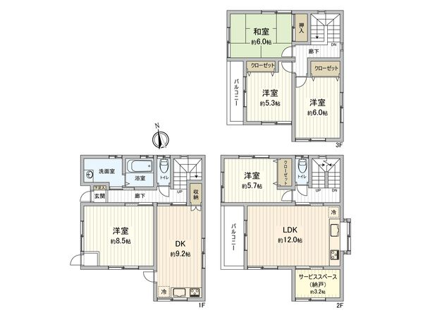 3LDK / 85.95㎡ / 1995年03月築 / 1階