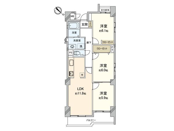 3LDK / 69.67㎡ / 1995年01月築 / 5階