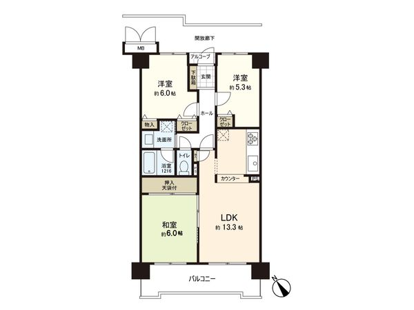3LDK / 68.72㎡ / 1995年11月築 / 10階