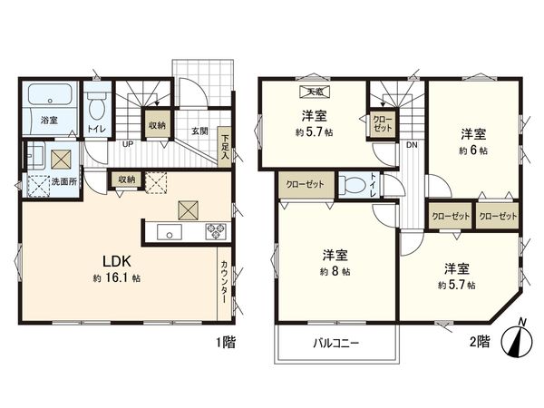 2SLDK / 建物92.34㎡ / 土地48.37㎡ / 新築