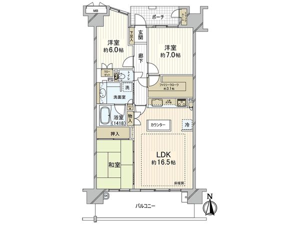 3LDK / 75.89㎡ / 1991年11月築 / 1階