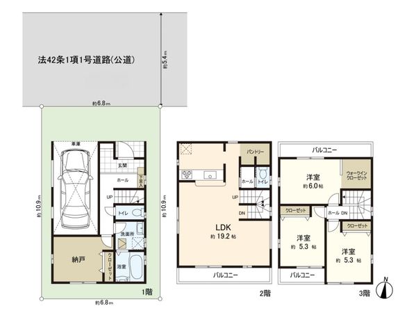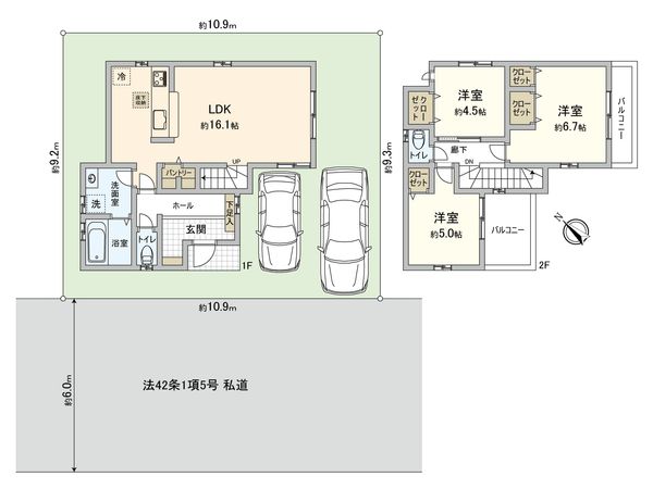 2SLDK / 建物95.05㎡ / 土地56.41㎡ / 新築