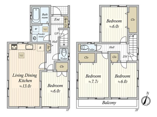 3LDK / 建物86.79㎡ / 土地52.15㎡ / 新築
