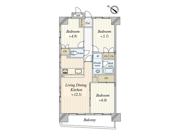 3LDK / 78.92㎡ / 1969年11月築 / 3階