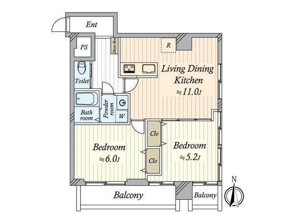 2LDK / 53.14㎡ / 2004年01月築 / 2階