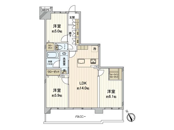 3LDK / 71.25㎡ / 2000年10月築 / 8階