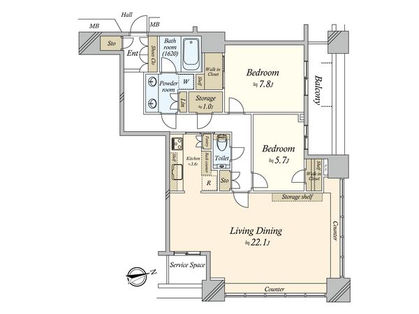 1LDK / 57.71㎡ / 2006年10月築 / 43階