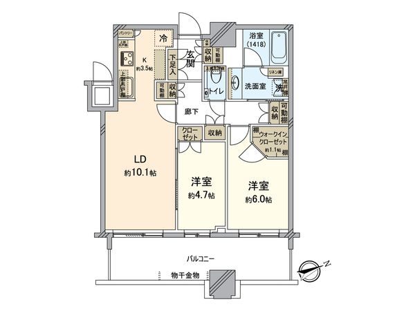 2LDK / 71.09㎡ / 2018年10月築 / 45階