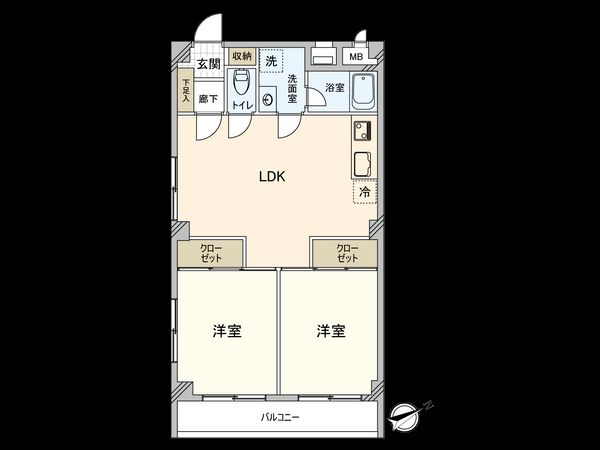 2DK / 47.25㎡ / 1984年07月築 / 1階