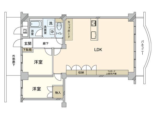 2LDK / 59.22㎡ / 1970年12月築 / 8階