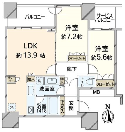 2LDK / 55.53㎡ / 2014年11月築 / 4階