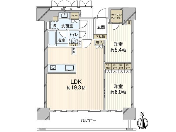 2LDK / 57.27㎡ / 2005年02月築 / 6階