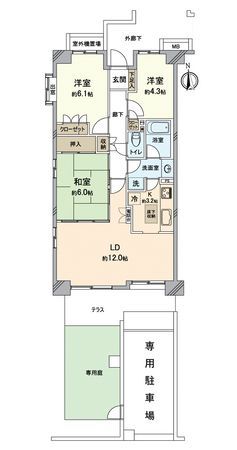 3LDK / 69.35㎡ / 1994年11月築 / 1階