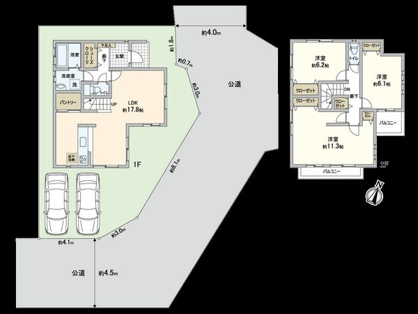| 接道状況 | 南側: 約 4.5m (公道)、東側: 約 4m (公道) |