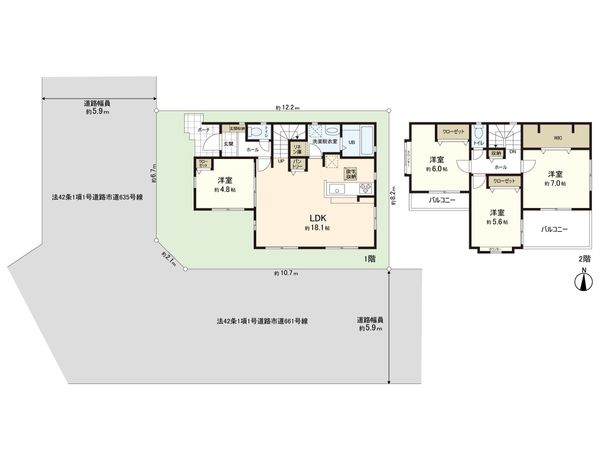 | 接道状況 | 西側: 約 5.9m (公道)、南側: 約 5.9m (公道) |