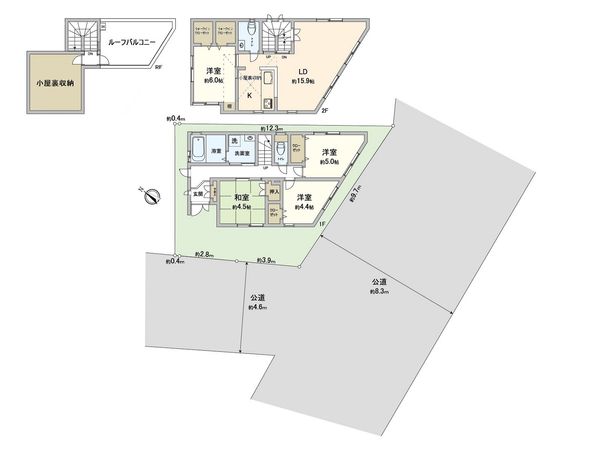 | 接道状況 | 南側: 約 8.3m (公道)、南西側: 約 4.6m (公道) |