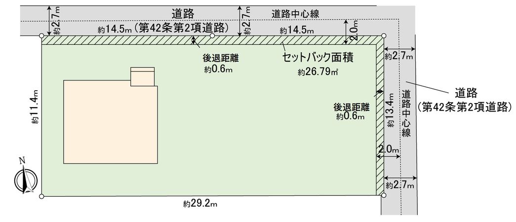 | 接道状況 | 北側: 約 2.7m (公道)、東側: 約 2.7m (公道) |