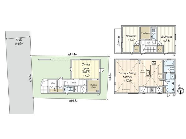 | 土地面積 | 58.76㎡(約17.77坪) ※別途私道約3.87㎡有 |