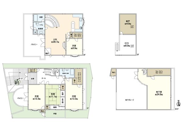 -おすすめポイント- 〇建物面積:366.18平米(約110.76坪) 〇注文建築の瀟洒な邸 〇趣味のスペースとしてご利用いただける地下室あり 〇電動シャッター付車庫2台分有り(車種による制限有り) 〇勾配天井のLDK約38.7帖 〇LDKに暖炉あり 〇LDKに面したバルコニーあり 〇螺旋階段のリビング階段 〇浴室・洗面所・トイレ各2カ所あり 〇2階浴室からの眺望良好 〇玄関・玄関ポーチ部分は御影石仕様 〇1階西側洋室の床は大理石仕様 ▼内外装リフォーム履歴 令和元年12月 外壁・屋根塗装、2階バルコニー防水工事 令和3年3月 2階浴室交換 令和3年7月 クロス貼替(1階西側洋室・1階玄関ホールおよび廊下・2階LDK・洗面所・3階ロフト) 2階洗面台収納扉交換、2階キッチン・2階洗面台蛇口交換 令和4年12月 ガスコンロ交換 令和5年7月 2階LDK西側窓のシャッター雨戸新設 令和5年8月 LDKフロアシート貼替、2階洋室クロス貼替 令和7年5月 給湯器交換