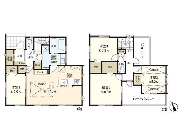 4LDK / 建物107.64㎡ / 土地184.22㎡ / 新築