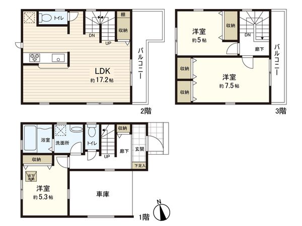 3LDK / 建物102.58㎡ / 土地49.29㎡ / 新築