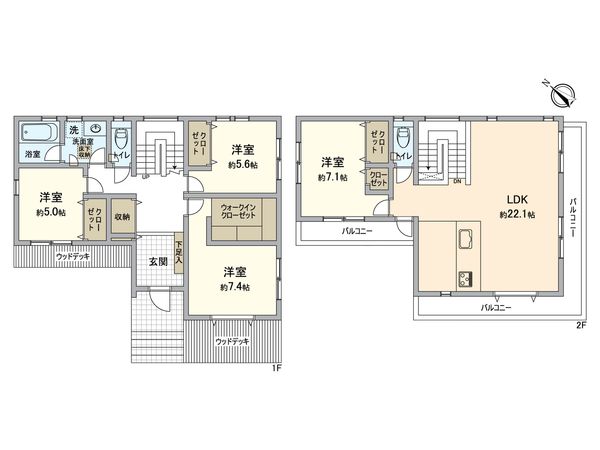 3LDK / 建物96.56㎡ / 土地72.1㎡ / 新築