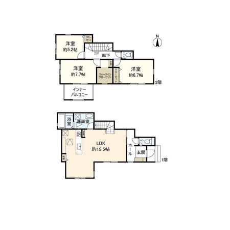 3LDK / 建物88.33㎡ / 土地75.95㎡ / 新築