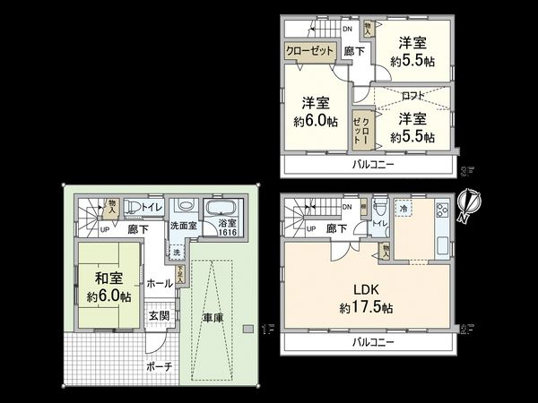 3LDK / 建物90.25㎡ / 土地56.38㎡ / 2001年04月築
