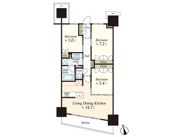 | 専有面積 | 72㎡(約21.78坪) |