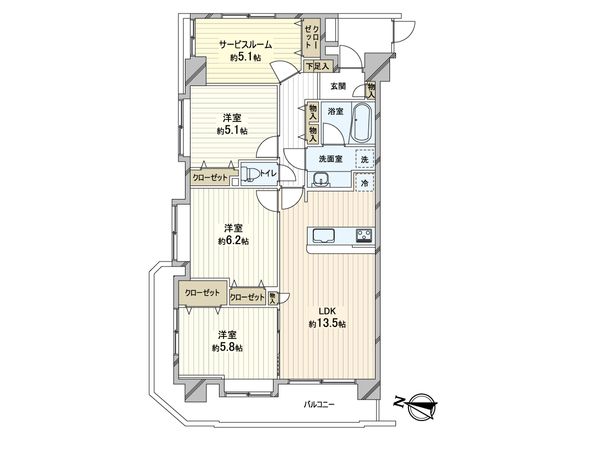 | 間取り | 3SLDK ※S・サービススペースは納戸です |