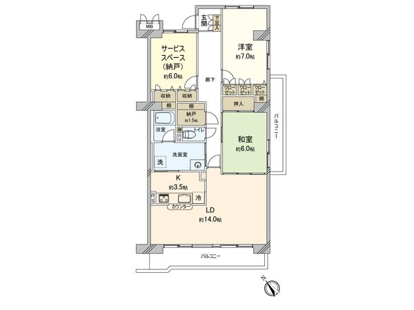 | 間取り | 2SLDK ※S・サービススペースは納戸です |