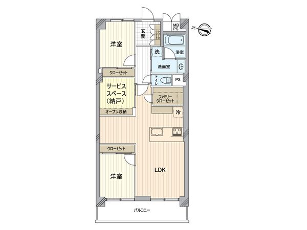 | 間取り | 2SLDK ※S・サービススペースは納戸です |