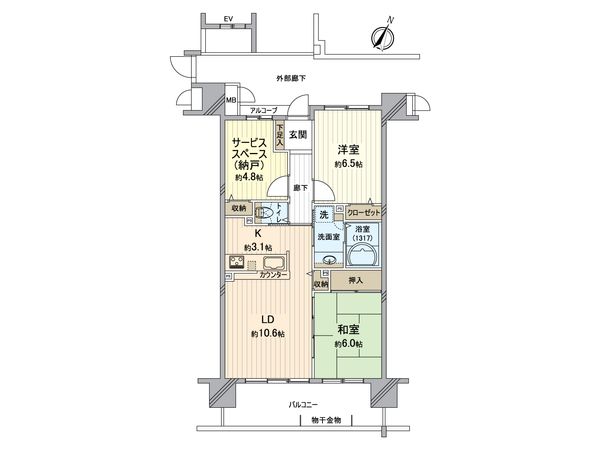| 間取り | 2SLDK ※S・サービススペースは納戸です |