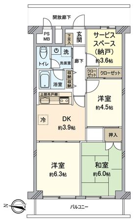 | 間取り | 3SDK ※S・サービススペースは納戸です |
