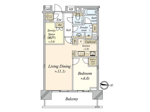 | 間取り | 1SLDK ※S・サービススペースは納戸です |