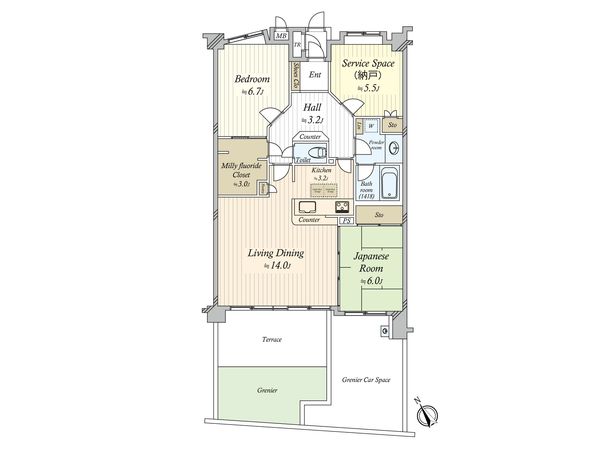 | 間取り | 2SLDK ※S・サービススペースは納戸です |