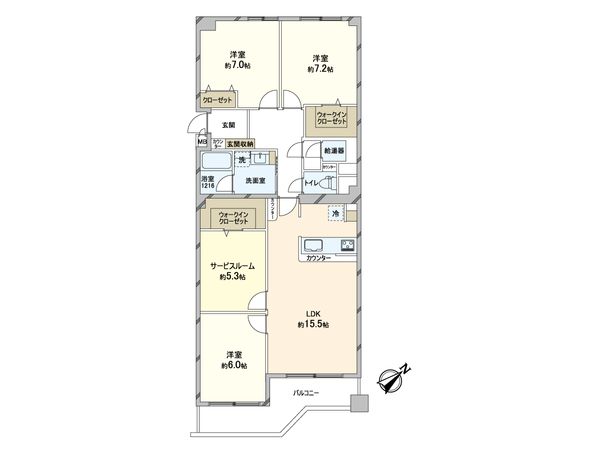 | 間取り | 3SLDK ※S・サービススペースは納戸です |