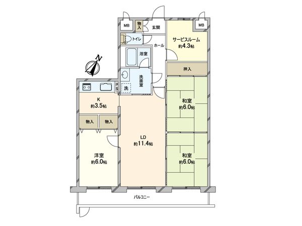 | 間取り | 3SLDK ※S・サービススペースは納戸です |