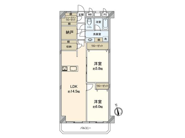| 間取り | 2SLDK ※S・サービススペースは納戸です |