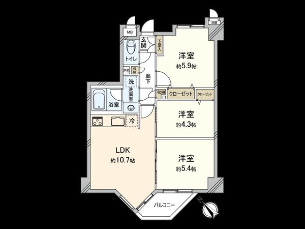 | 専有面積 | 59.28㎡(約17.93坪) |