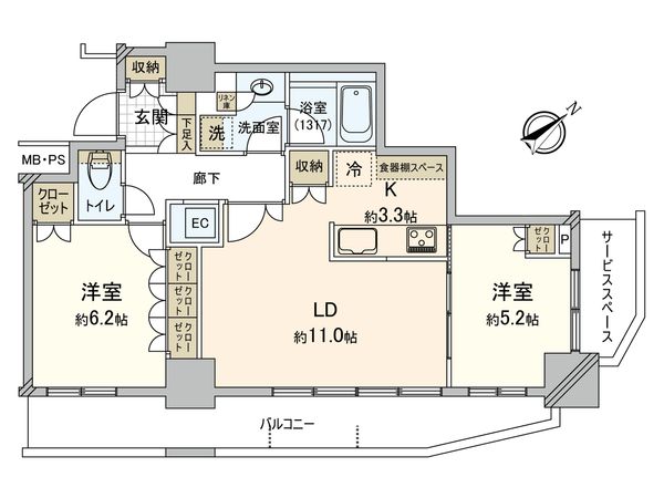 | 専有面積 | 62.01㎡(約18.75坪) |