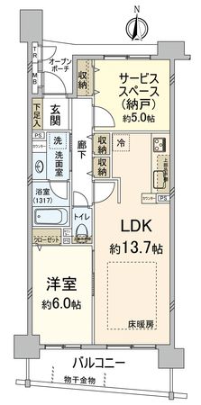 | 間取り | 1SLDK ※S・サービススペースは納戸です |