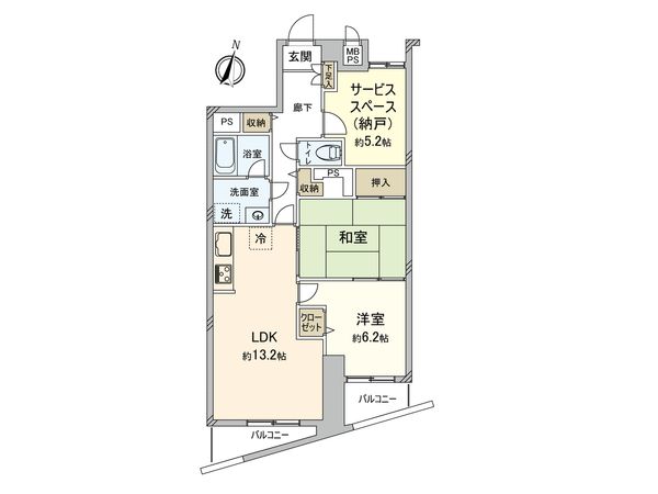 | 間取り | 2LDK+S ※S・サービススペースは納戸です |