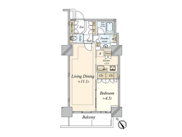 | 専有面積 | 44.3㎡(約13.4坪) |