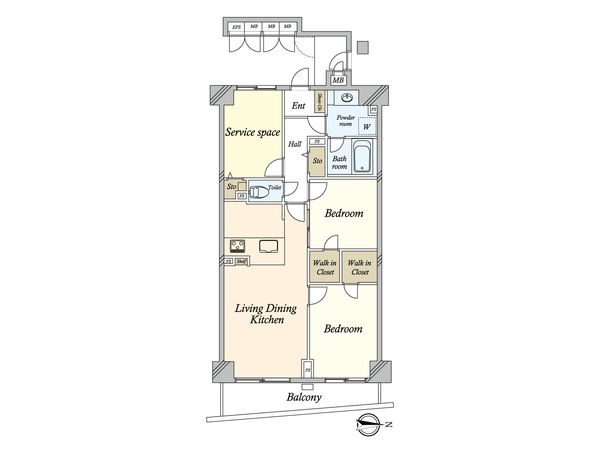 | 間取り | 2SLDK ※S・サービススペースは納戸です |